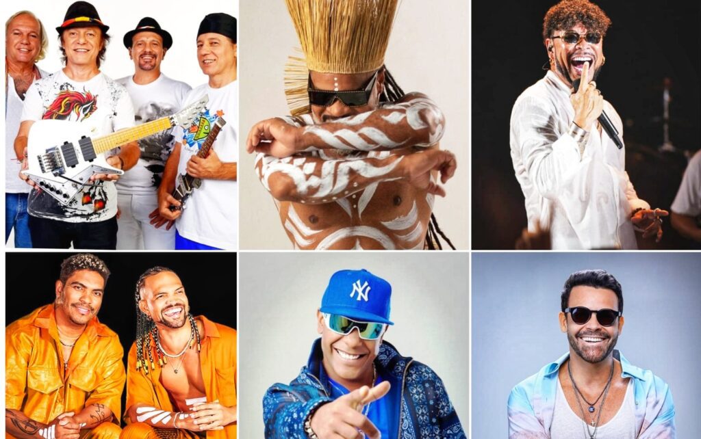 À noite, o Carnaval segue com festas temáticas e shows de axé, samba e outras vertentes da música brasileira, mantendo uma programação contínua ao longo de todo o feriado.