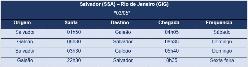 A campanha estará disponível até 2 de maio para viagens que tenham como destino ou origem a cidade do Rio de Janeiro entre os dias 2 e 5 de maio.