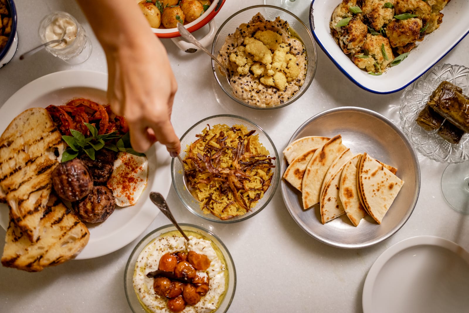 A releitura do tradicional arroz sírio com lentilha e cebola, o mjadra de galinha caipira, além dos queridos kibes e esfihas e da moussaka de cogumelo, versão vegetariana do prato grego, também integram o menu, que abre espaço para novidades.