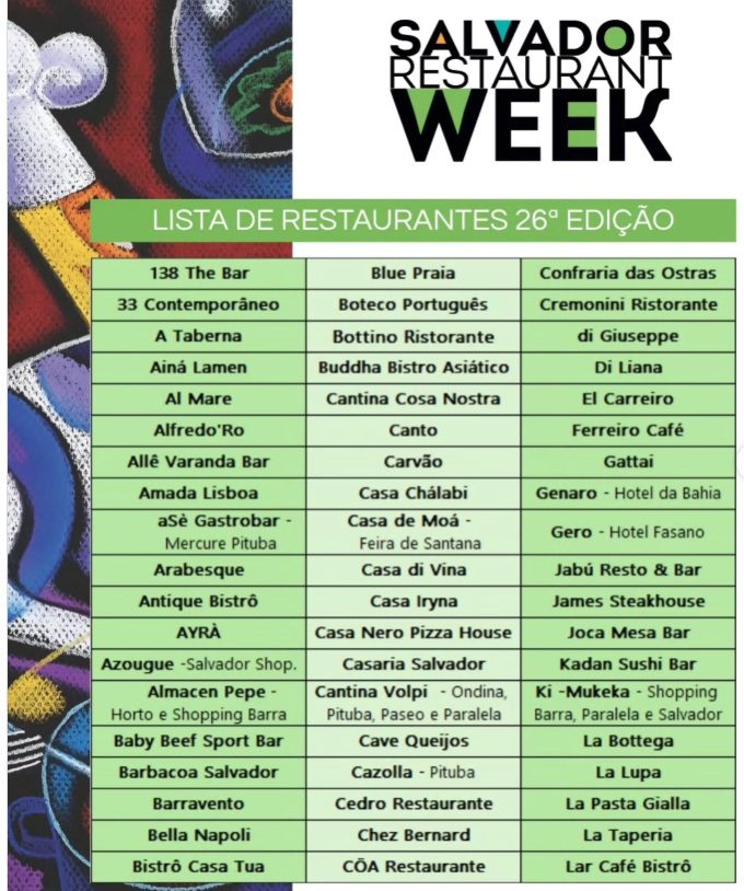 Mais informações – www.restaurantweek.com.br e @salvadorrestaurantweek