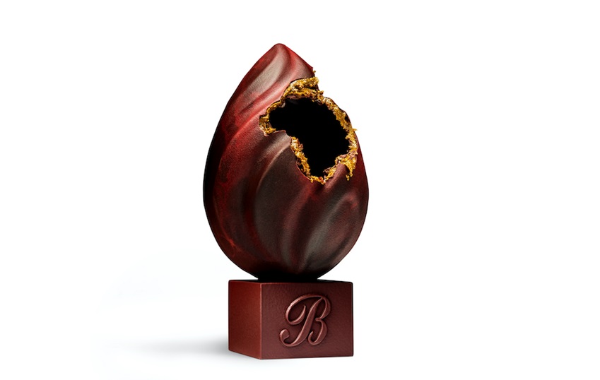 O talentoso Chef Chocolatier do icônico hotel Le Bristol Paris, Johan Giacchetti, surpreende ao criar o ovo de Páscoa intitulado “L’Oeuf Flamme”, em formato de uma chama. Tão simbólico quanto magnífico, a iguaria é o resultado de uma técnica acurada aliada à poesia que ultrapassa os limites do ganache e do praliné. A delicada casca é uma chama de chocolate amargo 70% venezuelano esculpida em espirais de iridescência amarela e vermelha aparentemente moldadas pelo vento. O ovo de Páscoa do Le Bristol Paris revela notas intensas e amanteigadas do chocolate amargo com o pistache expresso em praliné, delicadamente envolto em caramelo de flor de laranjeira, transportando o degustador da densa floresta tropical para a suave carícia do deserto. O ovo de Páscoa do Le Bristol é uma edição limitada e pode ser encontrado na boutique gourmet do hotel, a L’Épicerie des Ateliers du Bristol situada na elegante 114 Rue du Faubourg Saint-Honoré, na Cidade Luz.