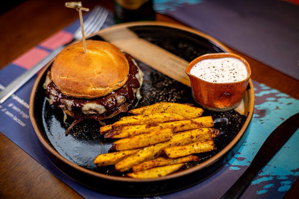 Com a assinatura Healthy, o Nosso Burger é feito com pão sem trigo de fabricação artesanal, carne de patinho (100g), barbecue saudável, cebola caramelizada, aioli, queijo e mix de alfaces. O prato acompanha batata doce rústica (R$ 55).