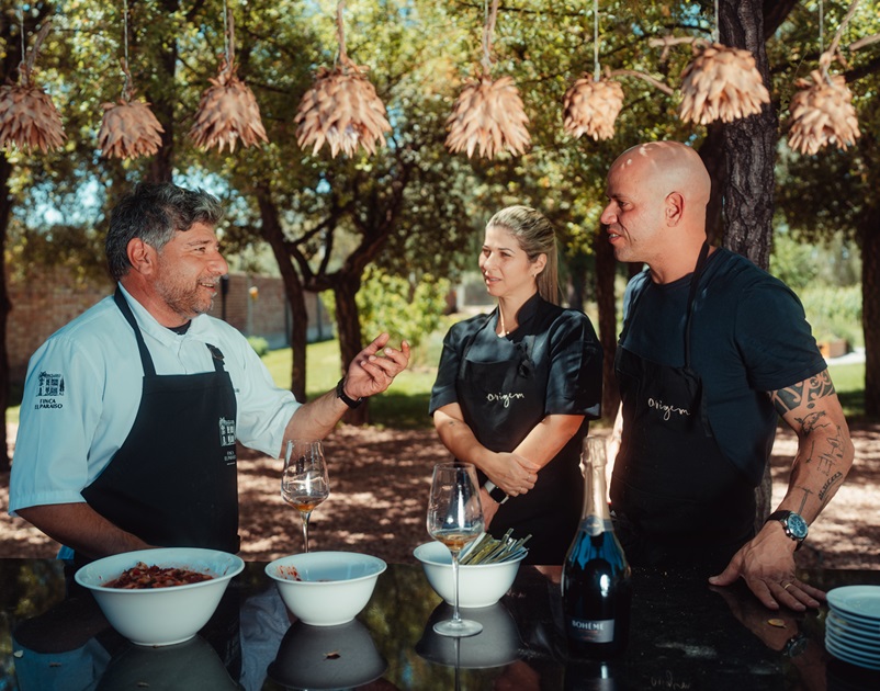 Os fundadores e sócios do Grupo Origem viajaram para a inspiradora Mendoza a convite do chef Pablo del Rio para criarem um menu exclusivo na ‘Experiencia Cuatro Manos’, que aconteceu na luxuosa Finca El Paraíso, fazenda da família Arizu, fundadora da Bodega Luigi Bosca. Com convites esgotados e uma grande mesa compartilhada, a experiência uniu a famosa culinária baiana, cuja identidade é resgatada por Fabrício e Lisiane em reinterpretações de ingredientes e preparos, à gastronomia única de Pablo, que traz influências da culinária espanhola, italiana e criolla, trabalhando ingredientes locais com intervenção mínima para serem apreciados em sua máxima pureza. “Foi muito bom compartilhar a cozinha com o chef Pablo, que além de um grande profissional é extremamente gentil.