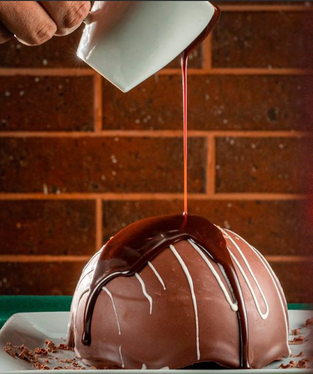 A doce delícia é desenhada por uma grande bola de sorvete no sabor creme, coberto com uma camada de chocolate. Para tornar ainda melhor a experiência, o doce é banhado por uma calda quente de chocolate meio amargo, proporcionando uma deliciosa desconstrucão, onde a camada derrete, resultando em uma explosão de sabores originais no paladar final. Uma tentação que serve até três pessoas.