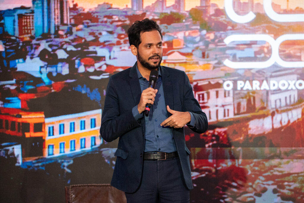 No segundo dia da Convenção Nacional AsBEA 2025, o historiador Rafael Dantas conduziu um grupo de arquitetos, representantes de estados de todo o país, por um tour pelas obras de arte do Hotel da Bahia by Wish. Referência histórica da hotelaria brasileira desde 1952, o hotel, que já foi palco dos Salões Baianos de Belas Artes entre 1949 e 1951, recebeu pela primeira vez a Convenção, o mais importante encontro dos escritórios de arquitetura do Brasil, que teve como tema “O paradoxo da cidade contemporânea” e contou com abertura de outro reconhecido historiador baiano, Chico Senna. “Foi uma experiência cultural, o Café com o Historiador, onde apresentamos o acervo de obras de arte do Hotel da Bahia by Wish composto por mais de 300 obras de arte modernistas e contemporâneas”, conta Rafael Dantas.